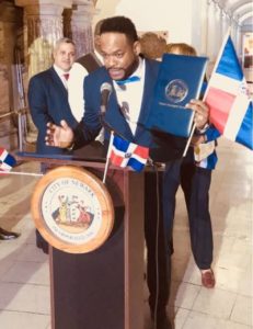 SANTO DOMINGO. El salsero dominicano Yiyo Sarante recibió varios reconocimientos de las manos de Ras Baraka, Alcalde de la ciudad de Newark, New Jersey, del Concejo Municipal, de la Asamblea General y de la organización Quisqueyanos Unidos de Newark, El acto fue motivado por la celebración del 174 aniversario de La Independencia Dominicana y se a cabo en El City Hall de dicha ciudad.